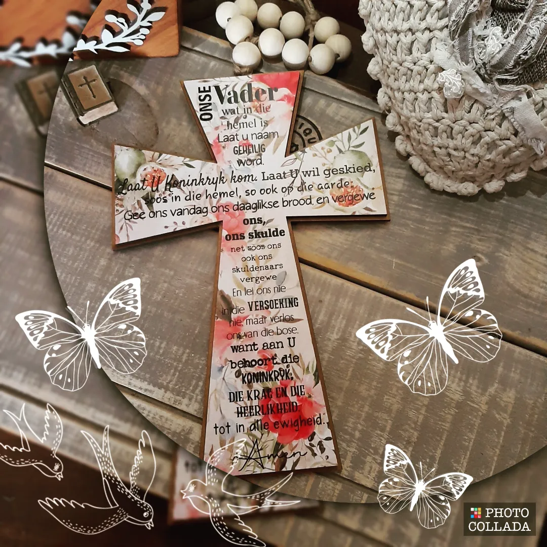 Decorative Wooden Cross with wooden Beads