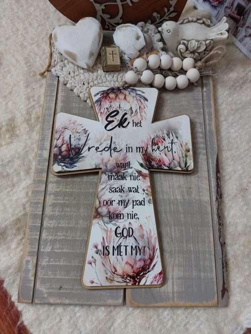 Decorative Wooden Cross with wooden Beads
