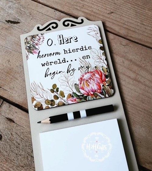 This handy and inspirational fridge mounted notepads is ideal for keeping track of what you really need on your next shopping trip. The magnetic strips means it can be kept on the fridge, so you can easily and quickly jot down any shopping items or little thoughts as the spring to mind. As most of our products this item is not only functional, but also decorative as it ads a little colour and a whole lot of inspiration to your day.