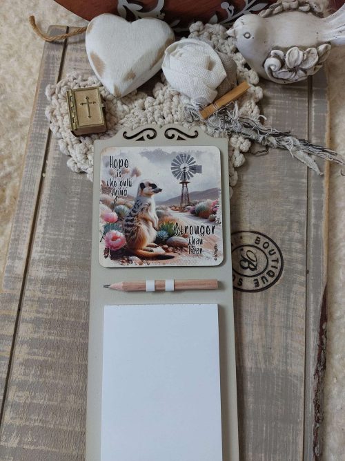 This handy and inspirational fridge mounted notepads is ideal for keeping track of what you really need on your next shopping trip. The magnetic strips means it can be kept on the fridge, so you can easily and quickly jot down any shopping items or little thoughts as the spring to mind. As most of our products this item is not only functional, but also decorative as it ads a little colour and a whole lot of inspiration to your day.