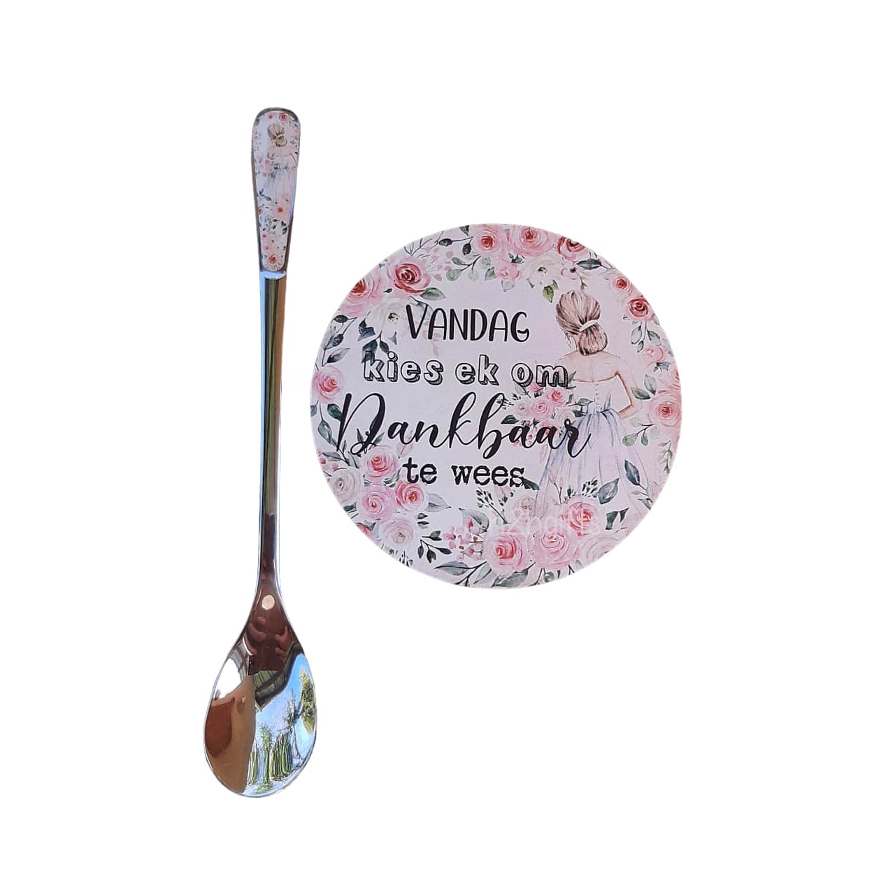 Our unique yet practical Latte Spoon  and matching coaster will add the perfect finishing touch to your coffee drinking experience and will definitely have your friends talking about it for days to come.  The spoon can even be used for that very end of the month jars to get your last sweet jams or nutella from the bottom of the jar, making sure nothing goes to waste. Great care is taken when choosing the artwork and the crafting of each of these items to create a perfect balance between functionality and beauty.! The coaster is a nice home or office addition  and makes your tablescape all the more attractive.
