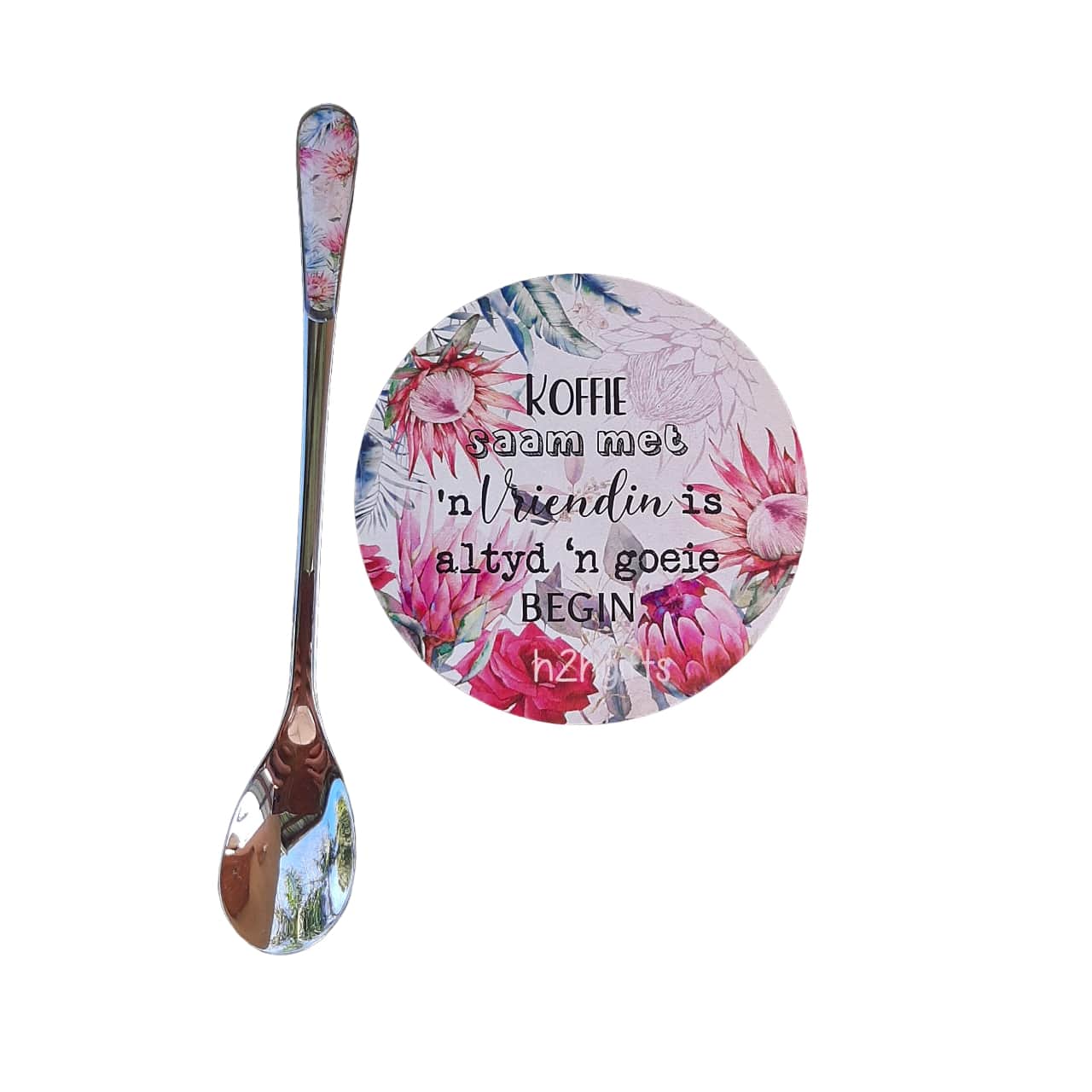 Our unique yet practical Latte Spoon  and matching coaster will add the perfect finishing touch to your coffee drinking experience and will definitely have your friends talking about it for days to come.  The spoon can even be used for that very end of the month jars to get your last sweet jams or nutella from the bottom of the jar, making sure nothing goes to waste. Great care is taken when choosing the artwork and the crafting of each of these items to create a perfect balance between functionality and beauty.! The coaster is a nice home or office addition  and makes your tablescape all the more attractive.