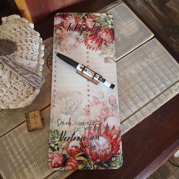 Magnetic Shopping List with magnetic White Board Marker to add some color to your kitchen and help you jot down all the things you need to buy or remember. Making life easier for those busy days when you just can’t seem to remember everything.
