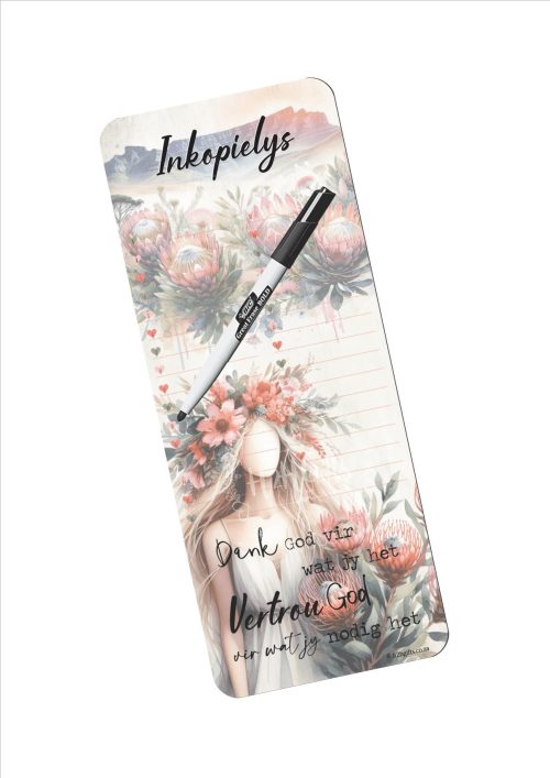 Magnetic Shopping List with magnetic White Board Marker to add some color to your kitchen and help you jot down all the things you need to buy or remember. Making life easier for those busy days when you just can’t seem to remember everything.
